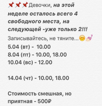 НА АПРЕЛЬ СВООДНЫХ МЕСТ БОЛЬШЕ НЕТ!