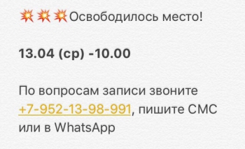 По вопросам записи звоните +7-952-13-98-991, пишите СМС или в WhatsApp, а также можете со мной связаться в вк, моя личная страница https://vk.com/lidasavelyeva