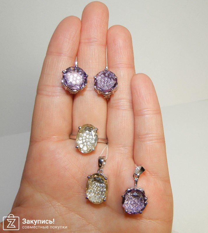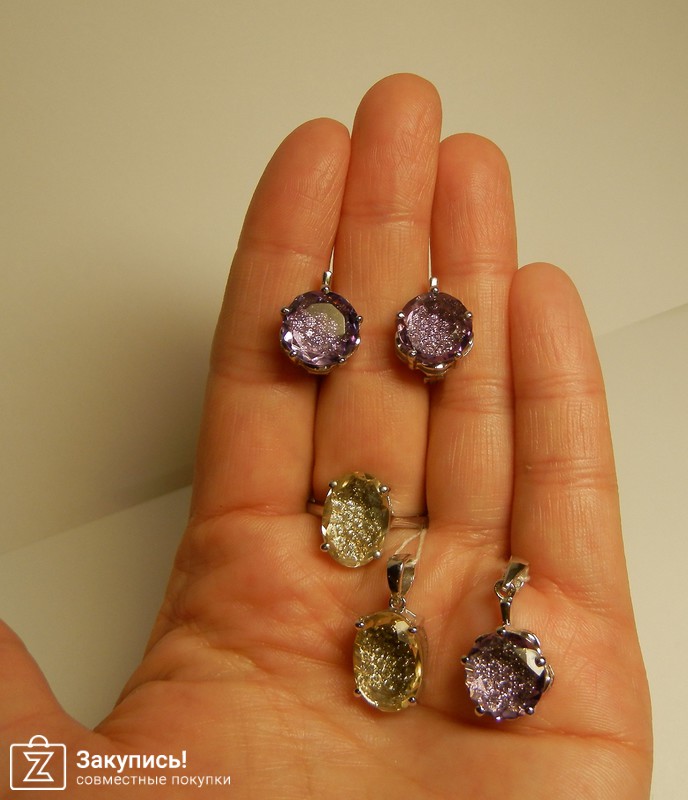 Набор с аметистами \"Серенада\" http://evoradeparis.ru/internet-magazin/product/53688003 и набор с лимонным топазом \"Дорис\" - http://evoradeparis.ru/internet-magazin/product/53664403 . Фото сделаны с вспышкой и без вспышки, чтобы могли увидеть разницу при освещении. Удивительный эффект создан за счет того, под камнями основными выложены на подложке цирконы. А так как и аметист и лимонный топаз прозрачные камни -то свет отражается и преломляется на цирконах просто волшебно.