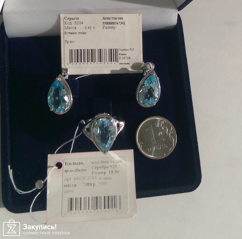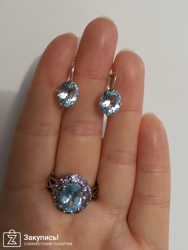 А тут набор который я собрала себе с двух сайтов. Кольцо с эворы( я его давно хотела) http://evoradeparis.ru/internet-magazin/pr...-tanzanit-iskra и сережки с топазом производства челябинского ювелирного завода( им бы название короткое и емкое придумать, а то писать долго получается...). С сайта эти сережки убрали(так как большая часть изделий в единственном экземпляре). Мне понравилась огранка топаза в сережках. Я такую огранку еще в топазах эворовских не видела( не попадались еще , может и есть у них ). Огранка вот такая- http://www.jewel74.ru/product_info.php/cPa...products_id/505 и поэтому сережки очень сильно преломляют свет и очень ярко сверкают при попадании света.