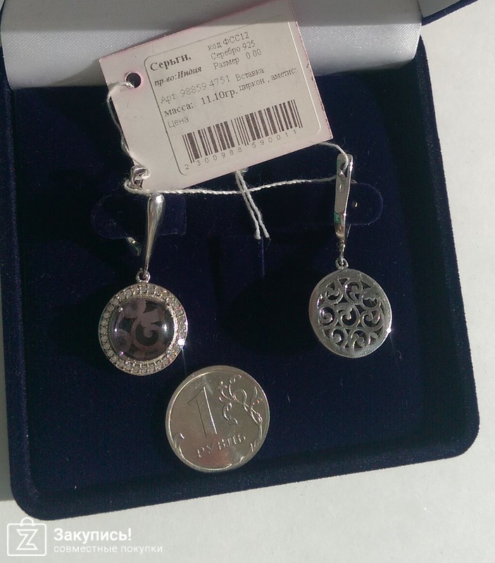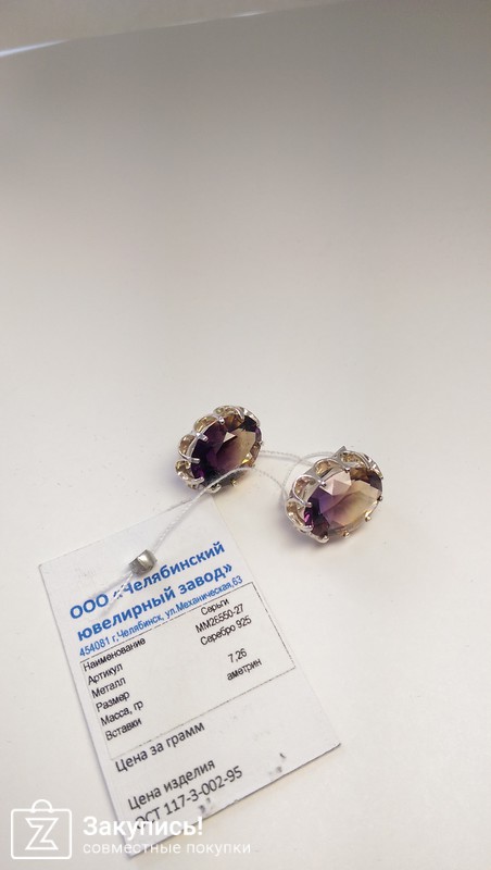И хочу добавить еще вот эти сережки, производства Челябинск. Камушек аметрин. Безумно красивый и интересный сережки очень аккуратные(вообще по двум пришедшим сережкам их производства -нареканий к качеству нет). Правда я не смогла сфоторгафировать цвет как следует,камушек на самом деле гораздо ярче. Вот тут почти 100% попадание http://www.jewel74.ru/product_info.php/products_id/97