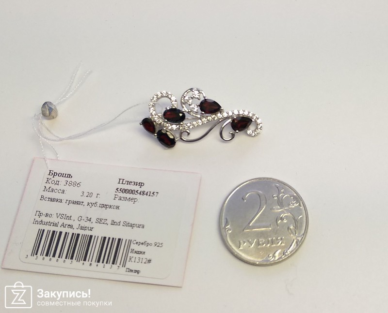 Очень аккуратная брошка с гранатом, ничего лишнего в ней нет. Все прекрасно-и форма и содержание !
