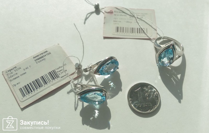 Сегодня забрала свои украшения. ООчень клевые!!!! Серьги арт.10592 и колечка (правда немного не из набора, но тоже с таким камнем). Мне очень понравились, блестят, переливаются, выглядят очень дорого!!!!