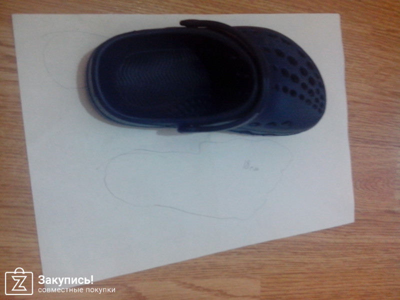 Сабо взяла на вырост, ну и за счет ремешка размер можно регулировать(пока великоваты - с ремешком носить, потом - без). На фото на сайте другой цвет был, повеселее, но и этот сойдет. На фото с бумажкой нарисована ножка длинной 18 см и ботиночек, чтобы понимать размер.