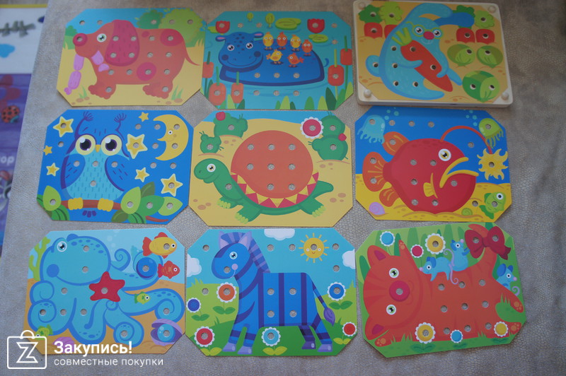 Долго же я искала аналог знаменитой мозаики из дерева. Мир деревянных игрушек не подвел. Да, Китай, но очень качественный. Карточки антивандальные, помять/порвать достаточно сложно.
