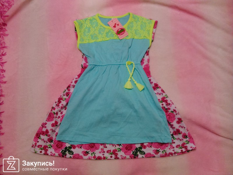 получены платья: Платье Dalmaz (размер 5-6 лет) и платье голубой (размер 6 лет). трикотаж неплохой (пока не стирала, т.к. на вырост), швы обрабоианы, но... так себе. на фото видно. на фото ребенок 4,5 года, рост 107 см. платье в цветочек - лежит до осени, а голубое платье маломерит (для сравнения см. фото) за \\\"размерность\\\" сняла звезду. закупка непростая, организатор справляется. спасибо, ждем остальные заказы