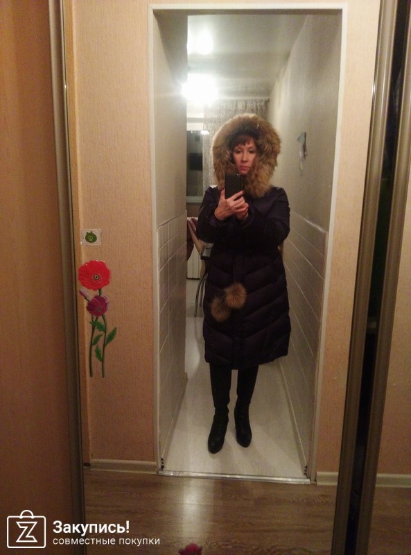 забрала из ЦР свой пуховик. Очень лёгкий, практически невесомый, думаю достаточно тёплый на холодную зиму будет. Размер 44, самый маленький у производителя, точно на 44, так как ношу 42, мне большеват, даже с зимними кофтами будет большеват однозначно. Поставила 3 в соответствии описанию, потому что очень узкая полоска меха, на фото гораздо шире шкурка, объёмнее. По бокам шкурка уже, похоже с живота лисы. Так же прямо по середине шкурка прихвачена нитками, из за этого мех не красиво разваливается на пробор, даже после увлажнения пульвером и сушки феном ситуация мало изменилась. В общем мех хоть и натуральный - чернобурка, портить всю картину. В общем сказать что в восторге, не скажу. За такие деньги он должен быть безупречен.