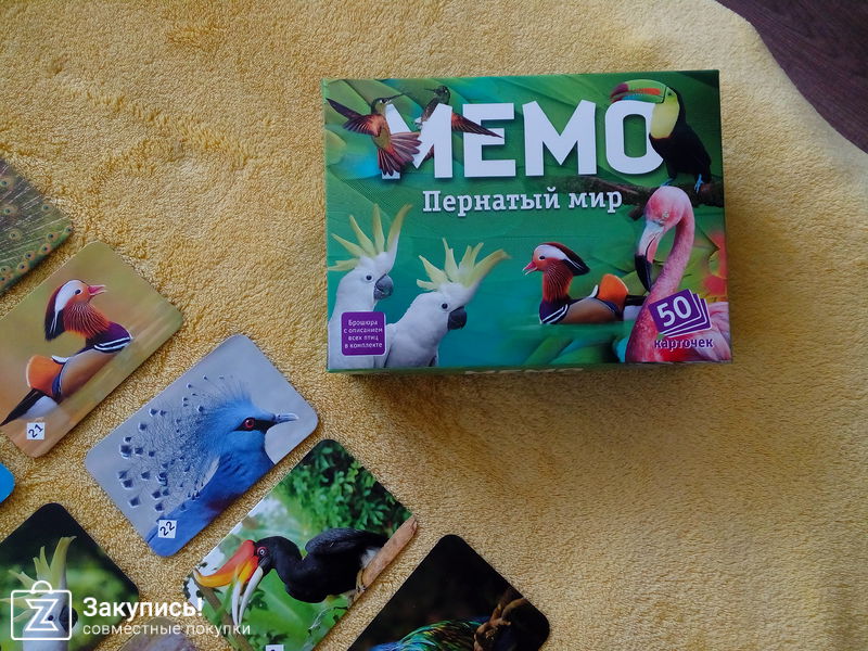 Люблю эту закупку нежной любовью!!! Игры в разы дешевле чем в интернетмагазинах. Работа орг-ра - чётко, слаженно, оперативно. В этот раз заказывала игры мемори от тм Нескучные игры. У нас уже есть удивительные животные и космос из этой серии - ребёнку нравится. Карточки яркие, красивые, плюс прилагается брошюра с информацией к каждой карточке, то есть не только память тренирует, но и ещё узнаёт новое. Флаги и пернатый мир - комплектация такая же, карточки тоже яркие, красивые. А цена ниже, чем в сималенде.