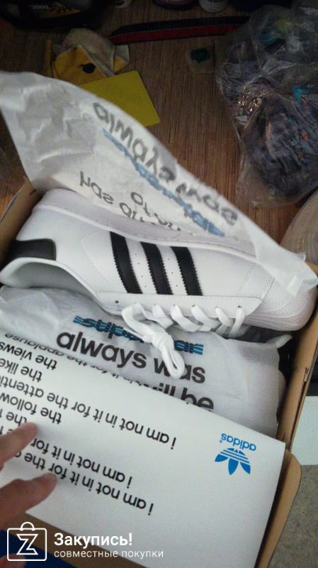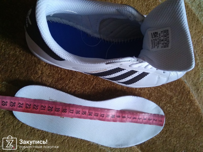 Заказывала мужу Кроссовки Adidas Superstar White Core Black 45 размера. В жизни носит размер 44, но постельке вроде как должен был подойти 45, так и получилось. Муж у меня вообще фанат суперстаров, раньше покупал в магазине. Но сейчас на оригиналы цены кошмарные. Уговаривала попробовать заказать тут))) и он не сколько не пожалел, что заказали здесь. Вообще не нашёл отличий от оригинала. Остался довольный! Будем заказывать еще. Организатору спасибо)