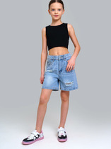 Трикотажные велосипедки для девочки из эластичного полотна в рубчик.— Описание у На сайте поставщика