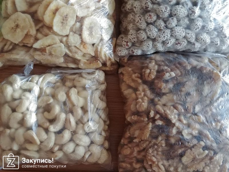 В целом мне закупка очень нравится. Быстрые выкупы, хорошие цены. Особенно нравится имбирь в сахаре - хватает надолго, и арахис в кунжуте - оочень вкусно. Изюм коричневый мелковат и с косточками, поэтому не очень рекомендую.