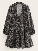 Платье с рюшами и V-образным вырезом с графическим принтом