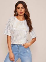 Блузка кружевная вставка Dip Hem Tee, большие размеры