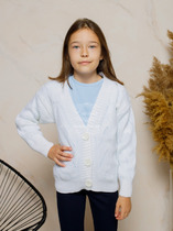 Кардиган для девочекРазмер: 116-128см ( one size)Состав: акрил 100%Артикул: g-019Страна производства: РоссияЦвет: белый