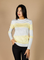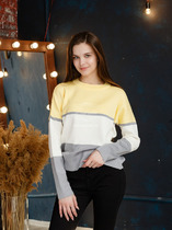 Джемпер "Акси" Размер: 42,44,46,48,50. Состав: хлопок 50%, акрил 50% Артикул: w-091 Цвет: желто-серый Страна производства: Россия