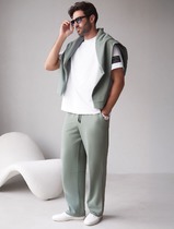 Брюки прямые на резинке из футера двухнитки с эластаном с затяжкой по низу