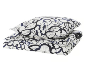 ikea HRLIR Bettwsche-Set, 2-teilig, wei schwarz/blau Blumenmus
