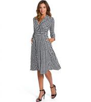 outlet46 Damen Strick-Kleid Business-Kleid im Hahnentrittmuster mit Gürtel