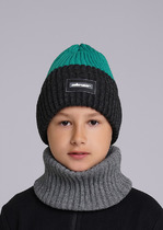 Акция Clever Шапка детская CLE 433816ап флис меланж т.серый/зелёный
