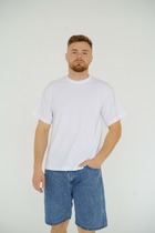 Футболка прямого силуэта. Укрепление по горловине спинки. Горловина из рибаны, по переду горловины отстрочка.— Описание у На сайте поставщика