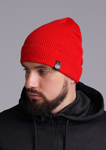 Мужская двойная шапка, ластичного переплетения с отворотом, декорирована логотипом- нашивкой.— Описание у На сайте поставщика