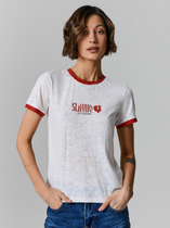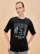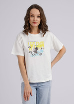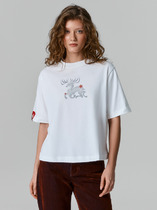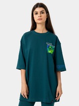 Джемпер из хлопкового трикотажного полотна. Короткий втачной рукав. Круглый вырез горловины. По переду термоапликация.