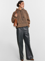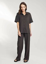 Брюки широкие из трикотажного полотна с блеском. По талии притачной пояс с внутренней резинкой и шлевками.— Описание у На сайте поставщика