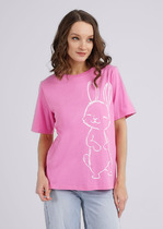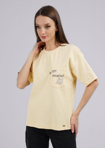 Джемпер из хлопкового трикотажного полотна. Короткий втачной рукав. Круглый вырез горловины. По переду принт.— Описание у На сайте поставщика