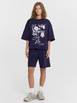 Футболка свободного кроя с фигурным низом и манжетами. шорты свободного кроя, средней длины с разрезами
