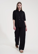 Джемпер свободного кроя с поясом и манжетами. Брюки свободного кроя зауженные к низу, со складами