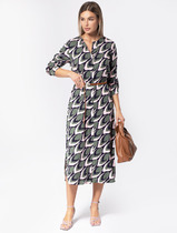 Vilatte Платье А-силуэта из премиальной вискозы-твил D22.232 черный-бежевый