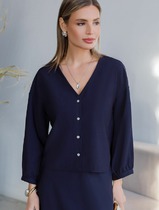 27.03 Vilatte Укороченная блузка с V вырезом из плотного лиоцелла D29.356 темно