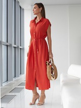Vilatte Длинное платье-рубашка с поясом и разрезами изо льна с вискозой D22.269