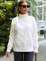 14.04 Vilatte Теплый свитер из хлопка с акрилом крупной вязки D34.181 белый