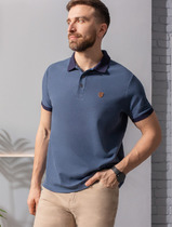 Vilatte Поло из фактурного материала из премиального хлопка U49.010 темно-синий