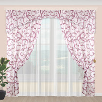 Роскошный комплект из тканей-компаньонов имеет множество вариантов вывешивания.Различные варианты оформления окна можно посмотреть на маленьких фото под основным.В комплекте 2 шторы из принтованной вуали и 4 шторы из однотонной вуали и два подхвата.