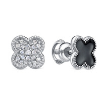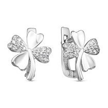 Серебряные серьги "Клевер"с бесцветными фианитами - 1105