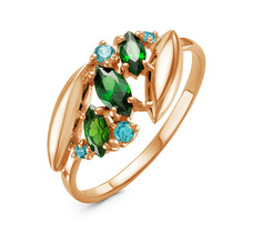 Позолоченное кольцо с зеленым фианитом - 628 - п
