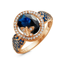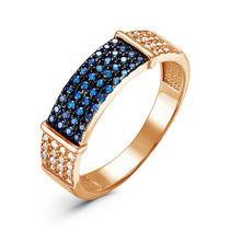 Позолоченное кольцо с синими фианитами - 958 - п