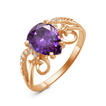 Позолоченное кольцо с фианитом фиолетового цвета 701 - п