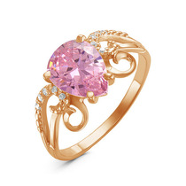 Позолоченное кольцо с фианитом розового цвета 701 - п