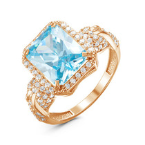 Позолоченное кольцо с голубым фианитом 695 - п
