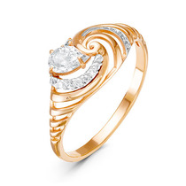 Позолоченное кольцо с бесцветным фианитом 515 - п
