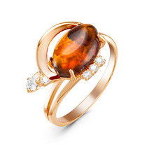 Позолоченное кольцо с янтарем - 282 - п