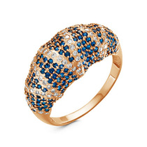 Позолоченное кольцо с фианитами синего цвета 1016 - п