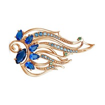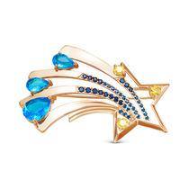 Позолоченная булавка "Снежинка" с голубыми фианитами - 665 - п