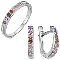 Металл: серебро; Тип вставки (камня): фианиты; Проба: 925; Цвет вставок: фиолетовый, б\ц; Вес: 5.4 г— Описание у На сайте поставщика