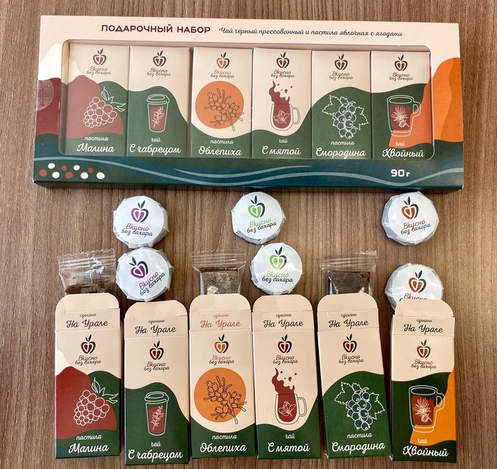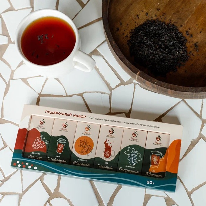 Набор подарочный Вкусно, без сахара "Яблочкая пастила + чай" 90 грамм