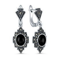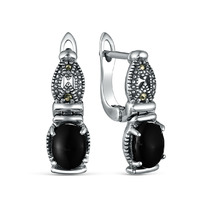 Серьги из чернёного серебра с ониксом и марказитами 925 пробы HE1028-ON-LK