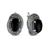 Серьги из чернёного серебра с натуральным ониксом и марказитами 925 пробы HE1105